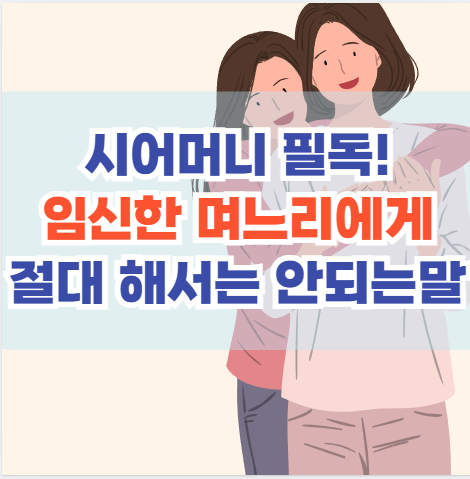오늘은 임신한 며느리에게 절대 해서는 안 되는 말 TOP 5를 상황별로 알아보고, 며느리의 입장에서 어떻게 받아들여질 수 있는지, 또 시부모님은 어떤 말로 바꾸면 좋을지 함께 나눠보겠습니다.